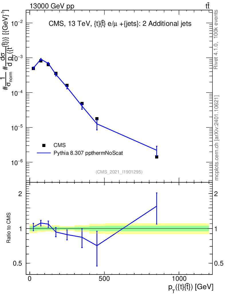 Lines: data, pythia8 8.307 ppthermNoScat |