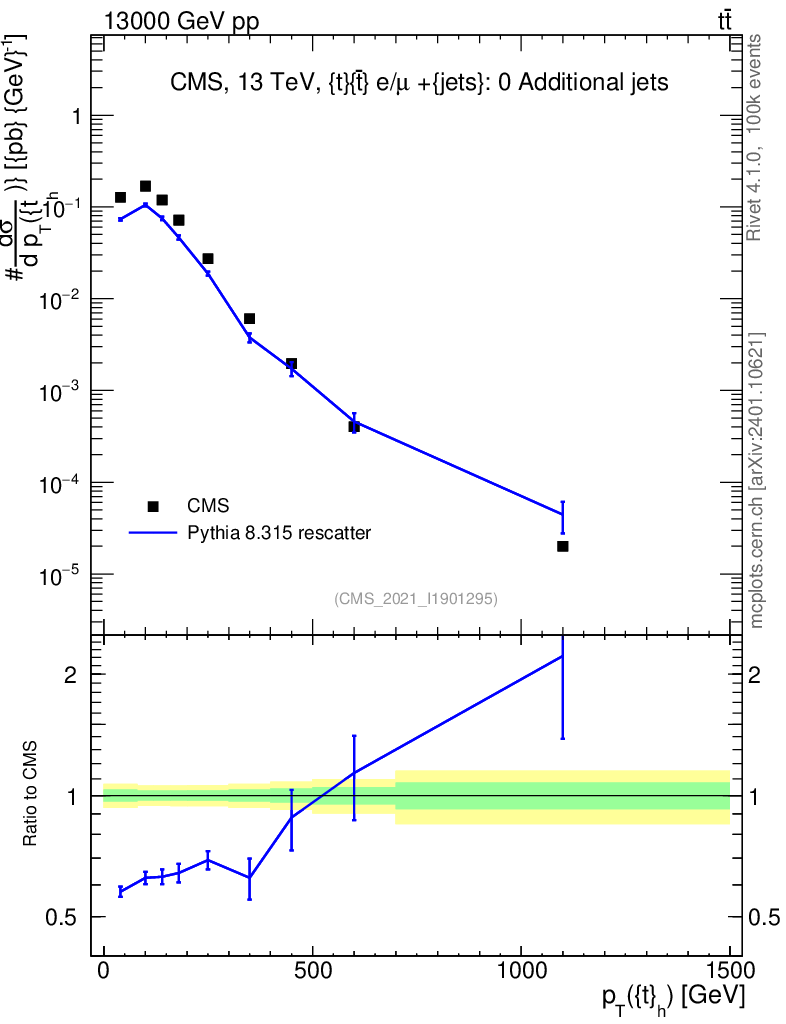 Lines: data, pythia8 8.315 rescatter |
