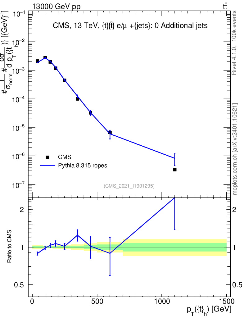 Lines: data, pythia8 8.315 ropes |