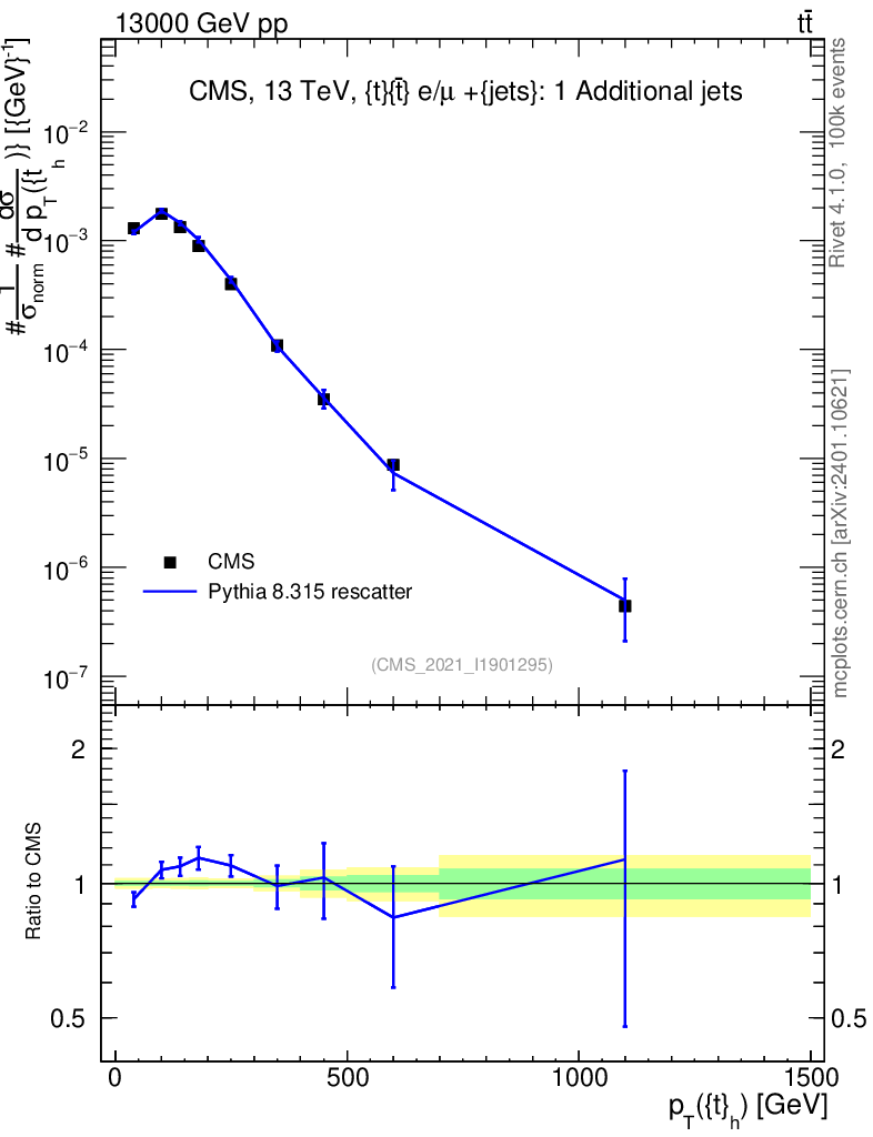 Lines: data, pythia8 8.315 rescatter |