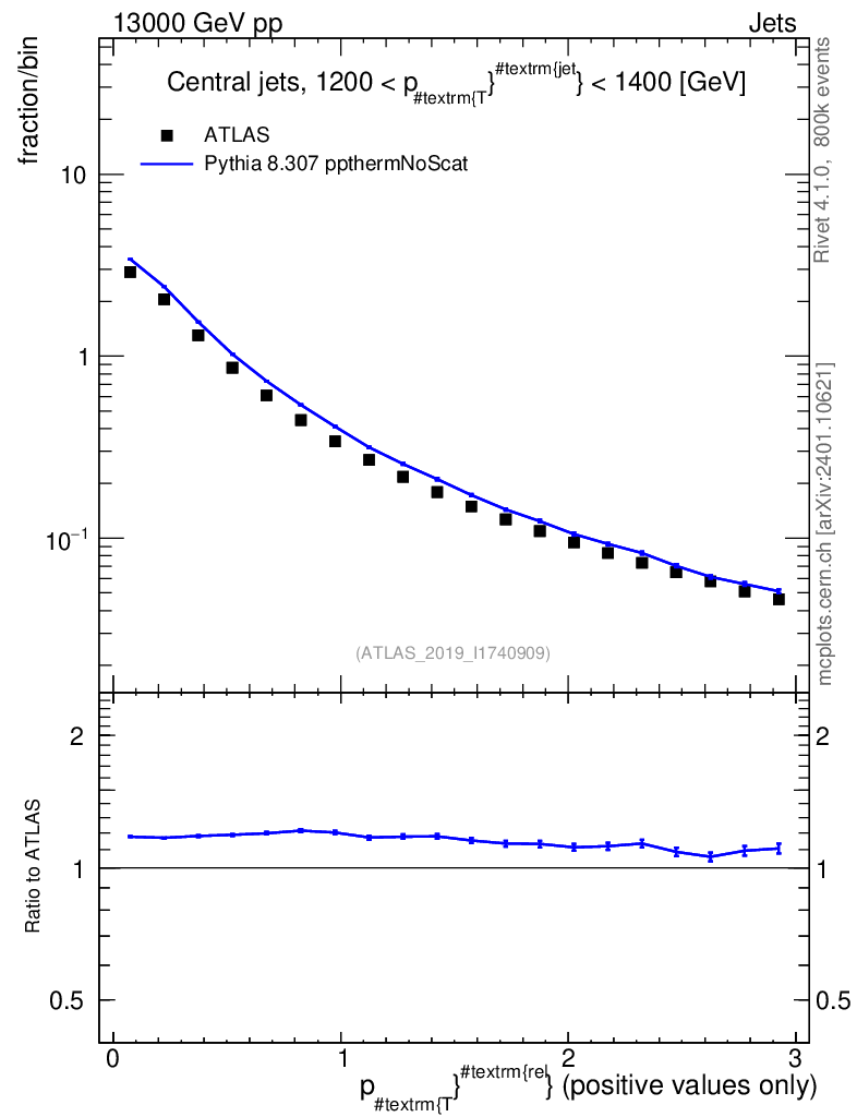 Lines: data, pythia8 8.307 ppthermNoScat |