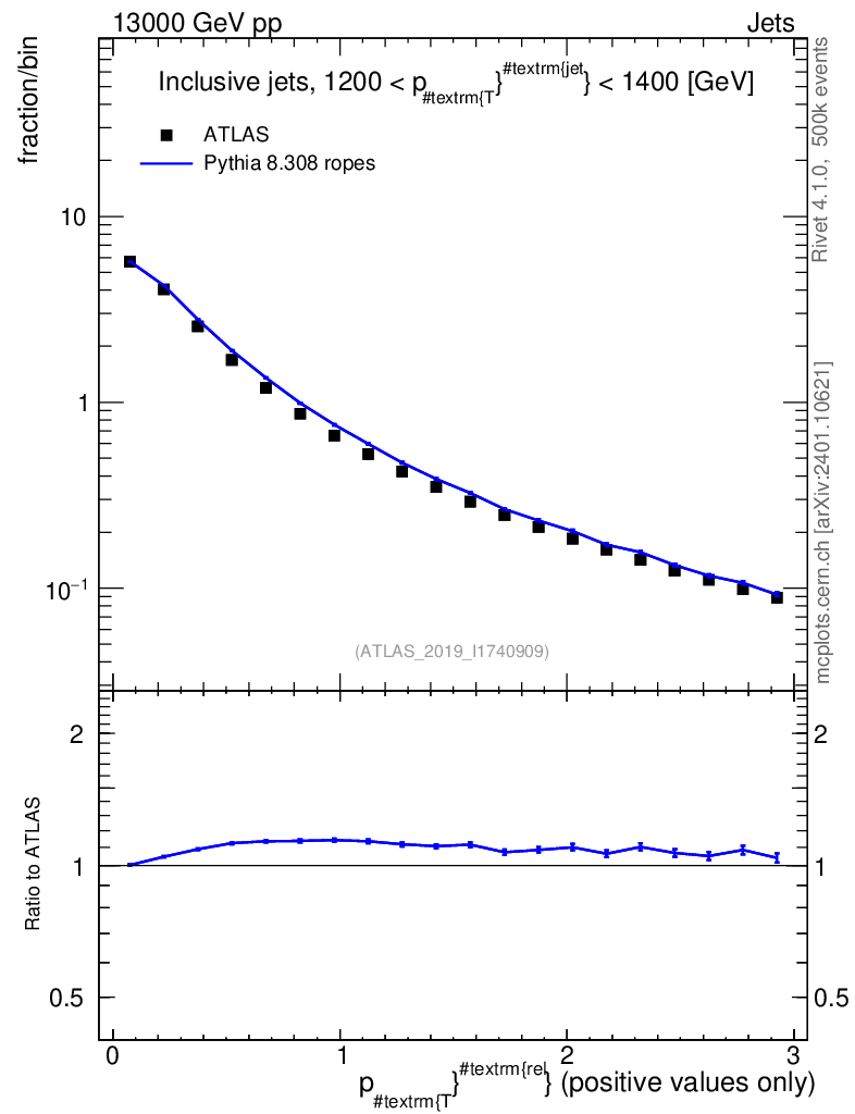 Lines: data, pythia8 8.308 ropes |