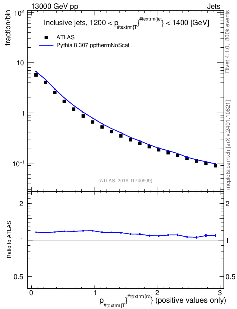Lines: data, pythia8 8.307 ppthermNoScat |