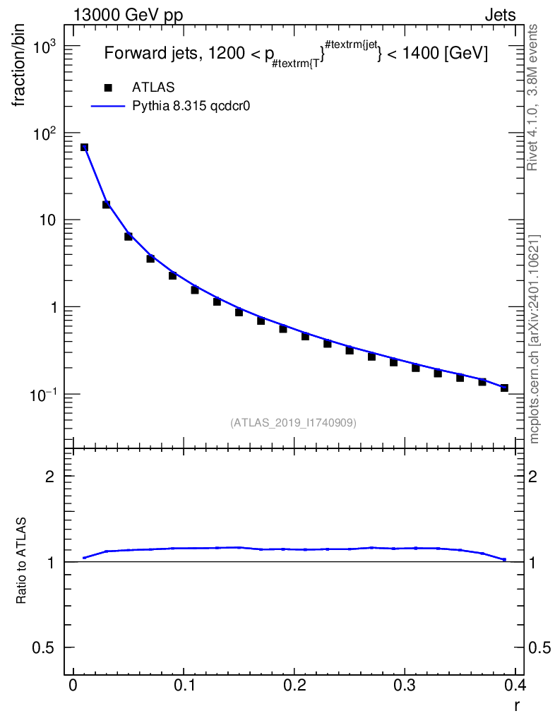 Lines: data, pythia8 8.315 qcdcr0 |