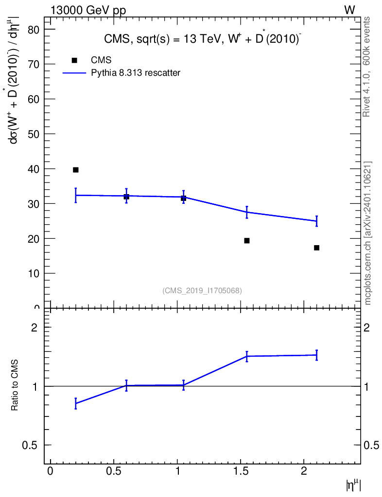Lines: data, pythia8 8.313 rescatter |