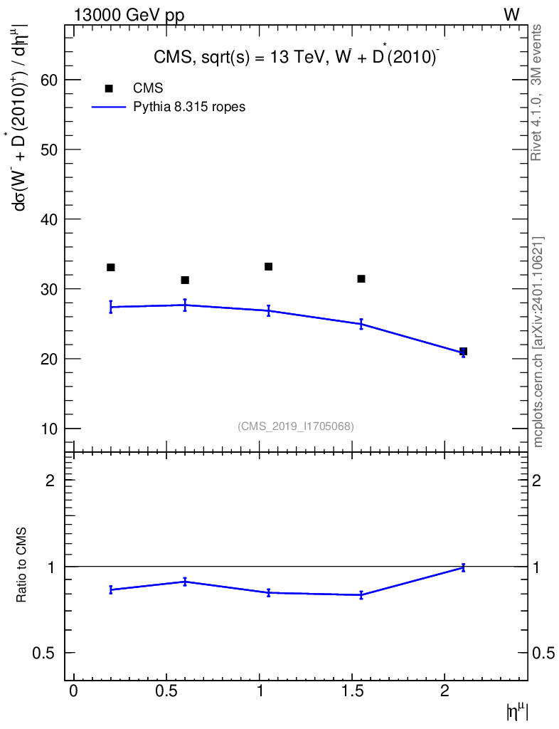 Lines: data, pythia8 8.315 ropes |