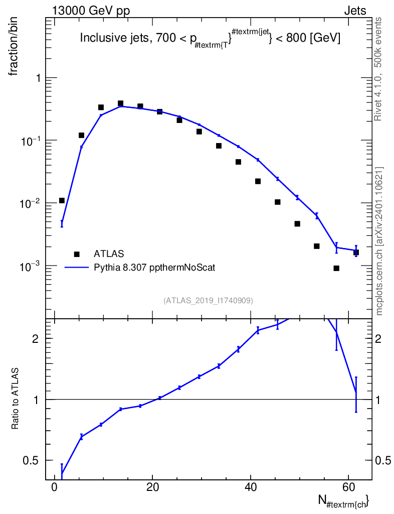 Lines: data, pythia8 8.307 ppthermNoScat |