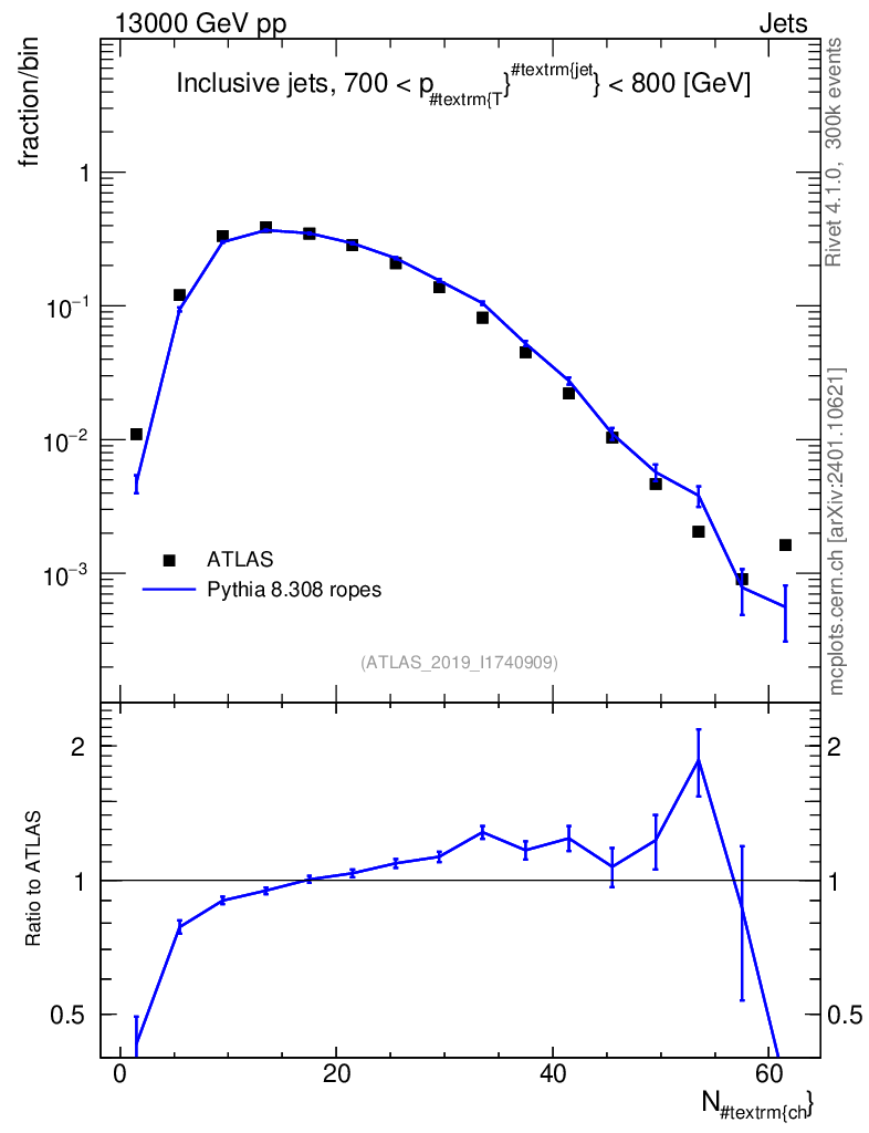 Lines: data, pythia8 8.308 ropes |