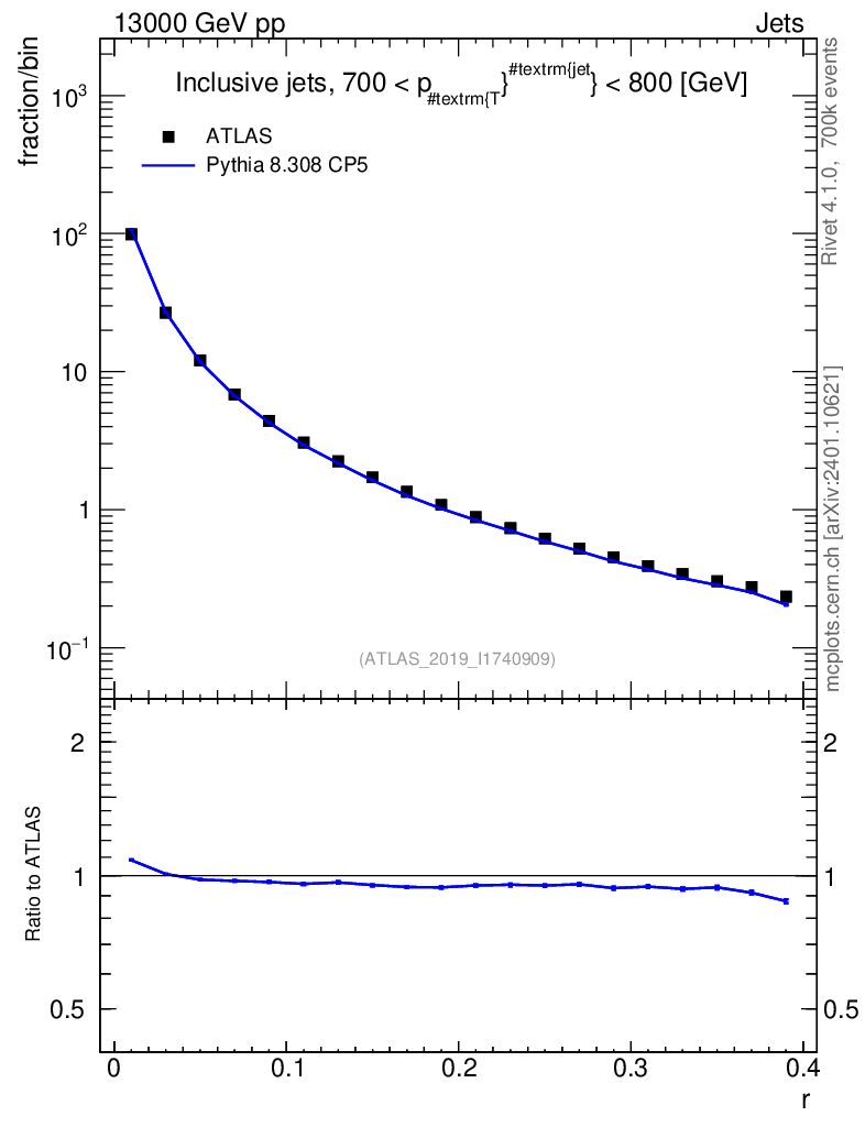 Lines: data, pythia8 8.308 CP5 |