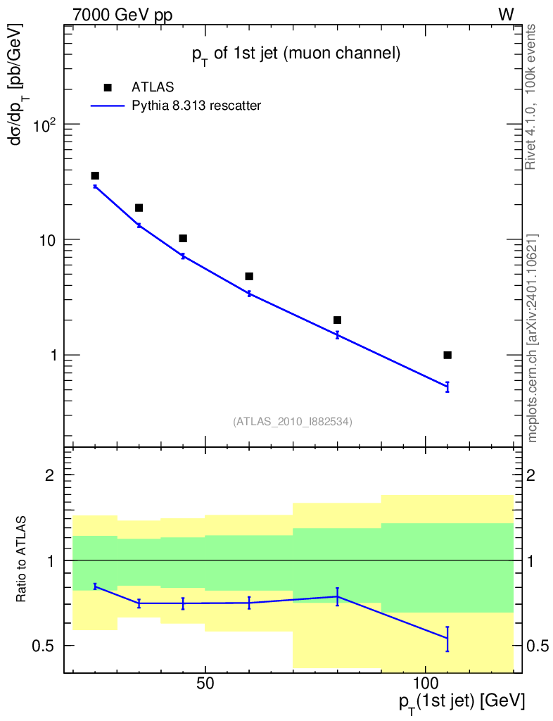 Lines: data, pythia8 8.313 rescatter |