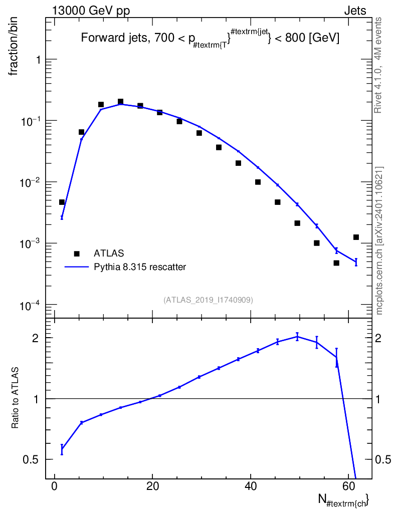 Lines: data, pythia8 8.315 rescatter |