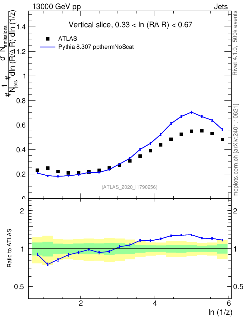 Lines: data, pythia8 8.307 ppthermNoScat |