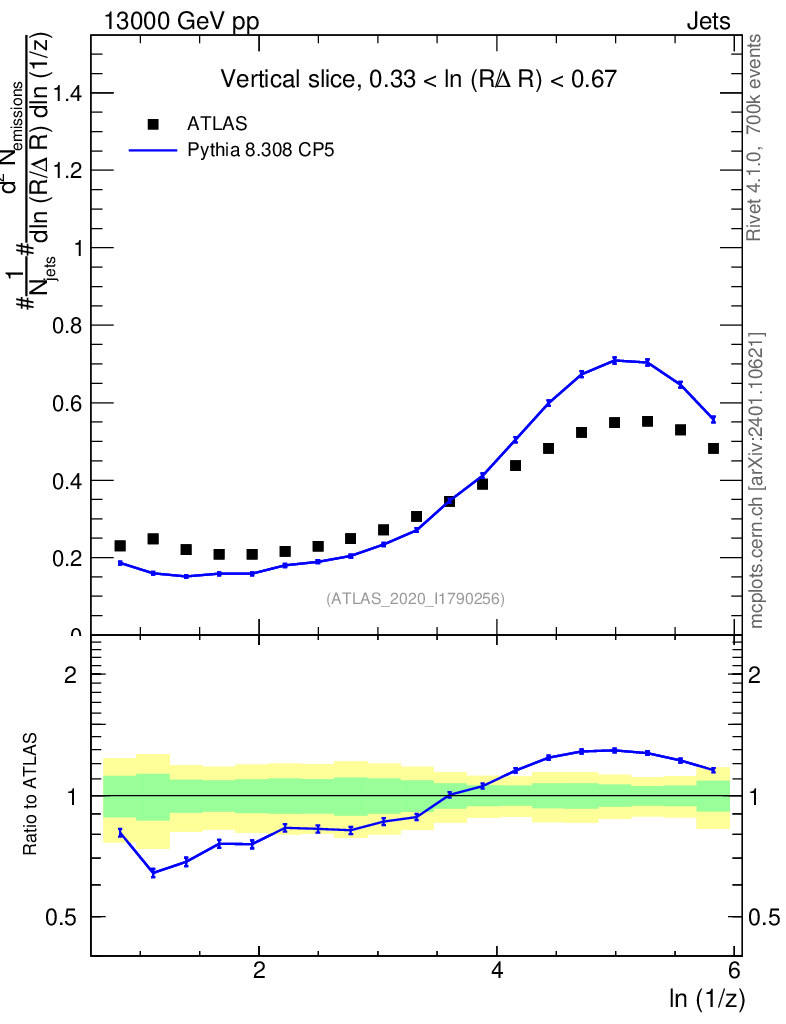 Lines: data, pythia8 8.308 CP5 |