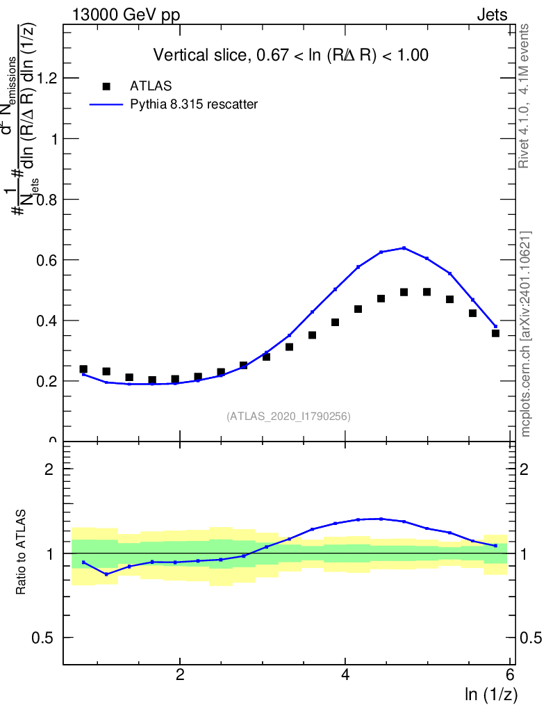 Lines: data, pythia8 8.315 rescatter |