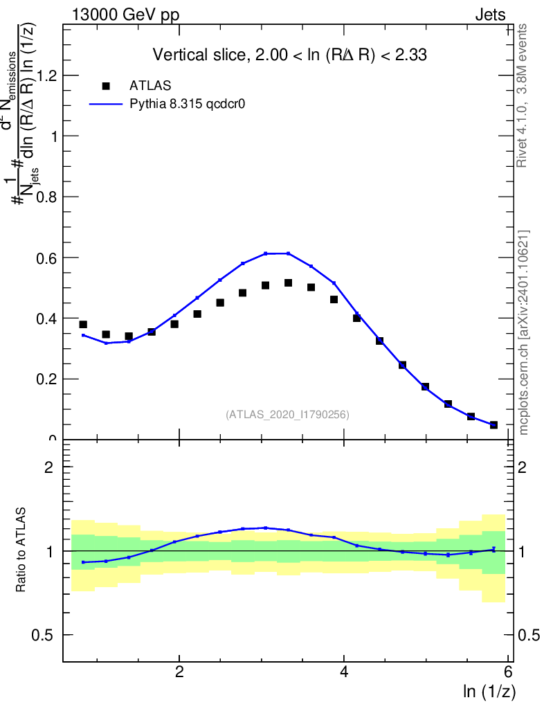 Lines: data, pythia8 8.315 qcdcr0 |