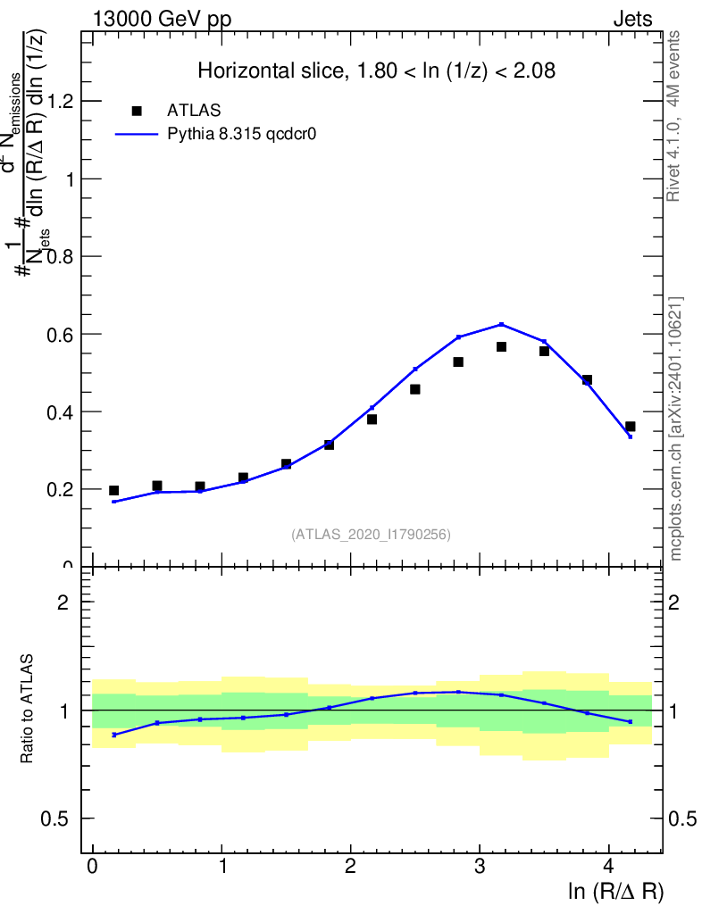 Lines: data, pythia8 8.315 qcdcr0 |