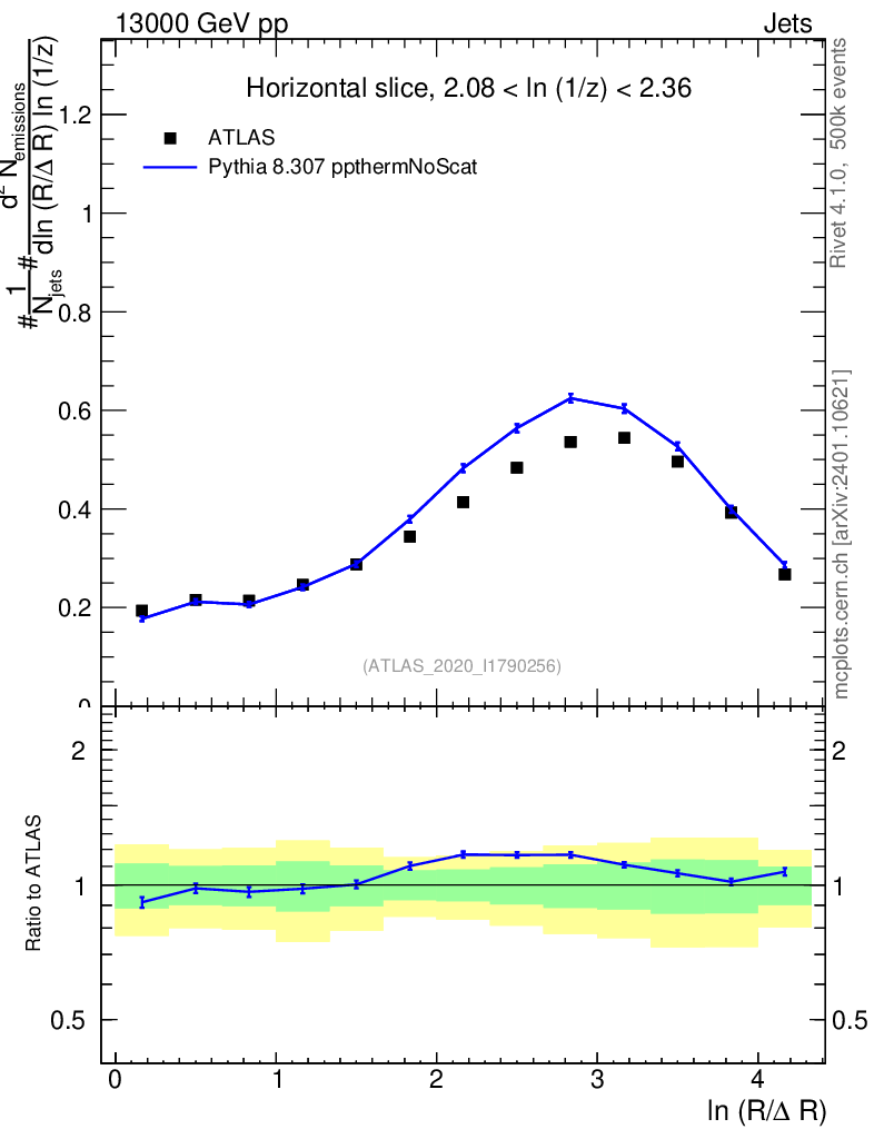 Lines: data, pythia8 8.307 ppthermNoScat |