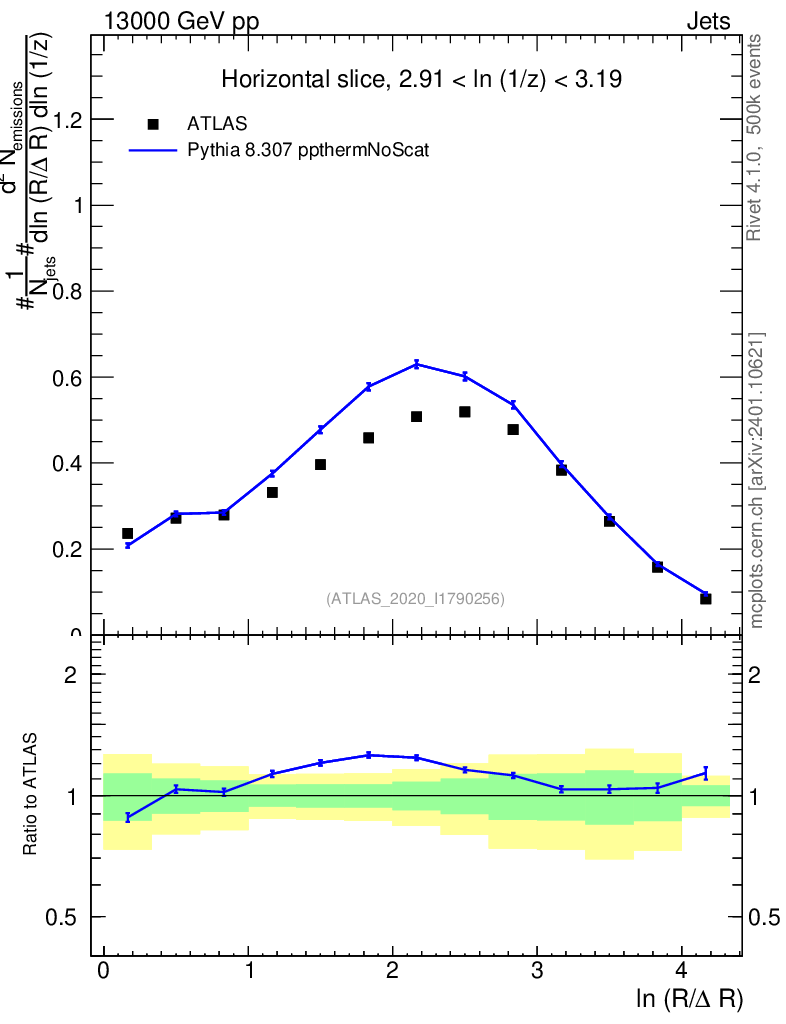 Lines: data, pythia8 8.307 ppthermNoScat |