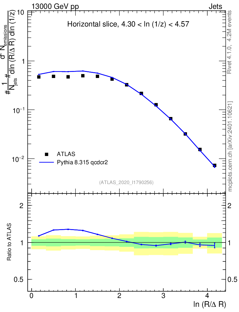 Lines: data, pythia8 8.315 qcdcr2 |