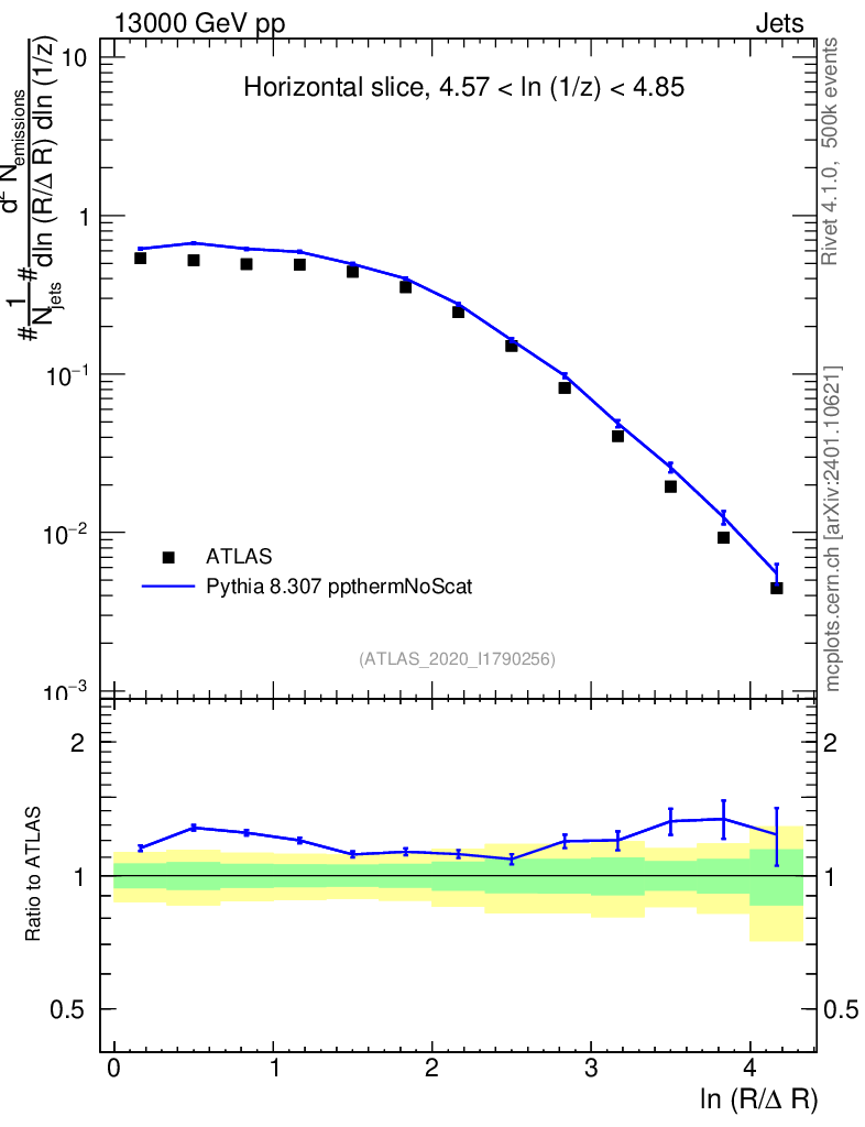 Lines: data, pythia8 8.307 ppthermNoScat |