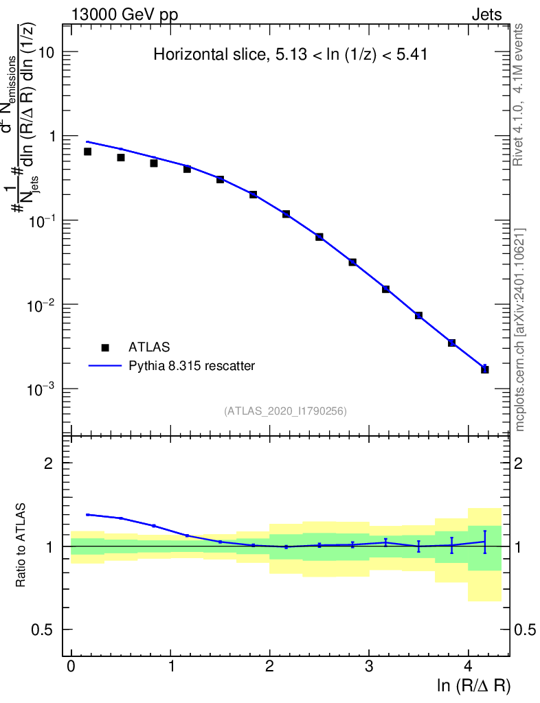Lines: data, pythia8 8.315 rescatter |