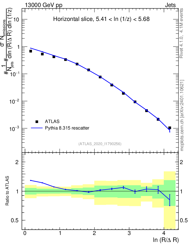 Lines: data, pythia8 8.315 rescatter |