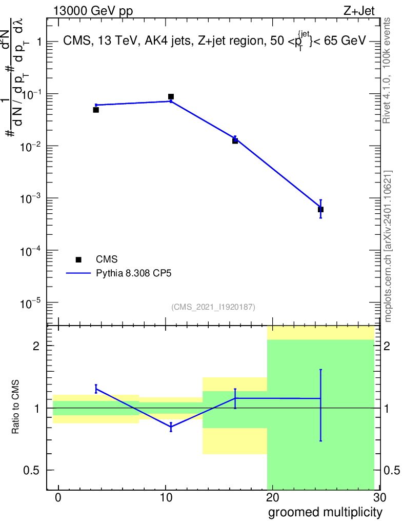 Lines: data, pythia8 8.308 CP5 |
