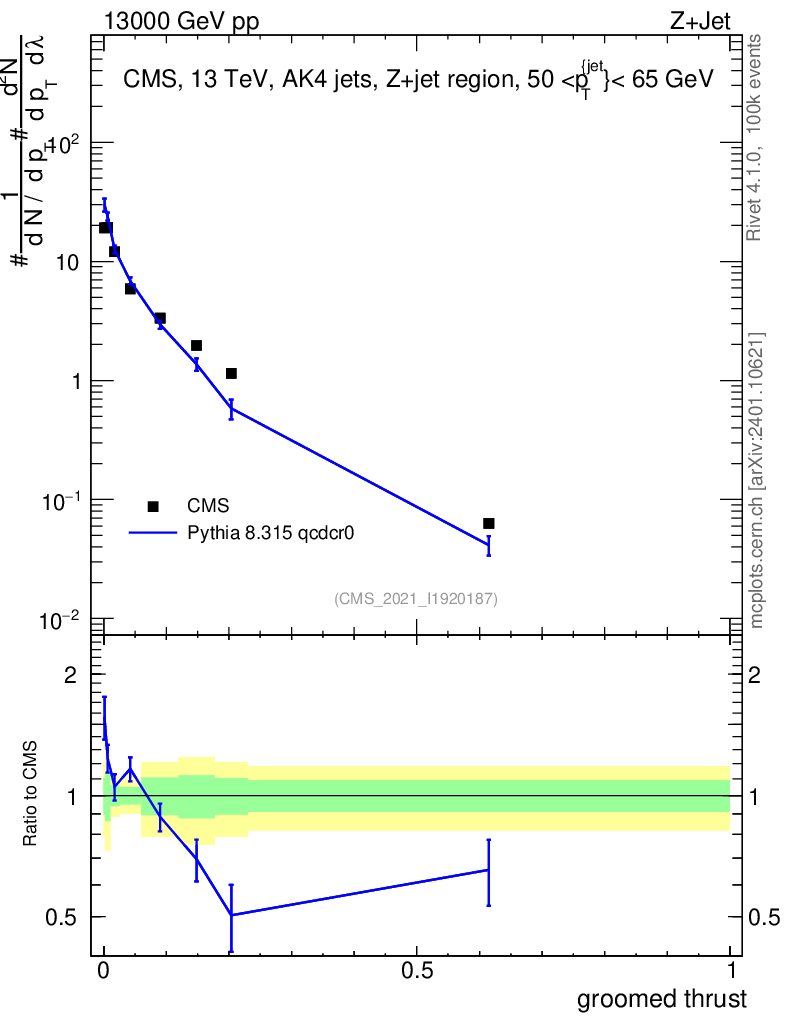 Lines: data, pythia8 8.315 qcdcr0 |