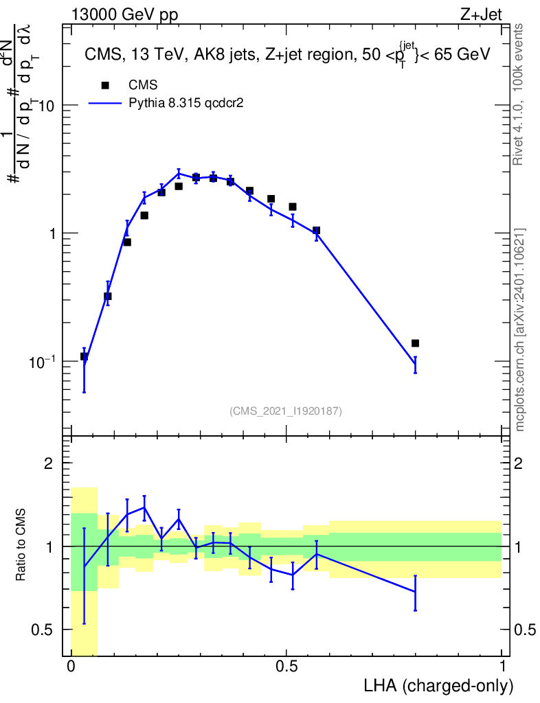 Lines: data, pythia8 8.315 qcdcr2 |