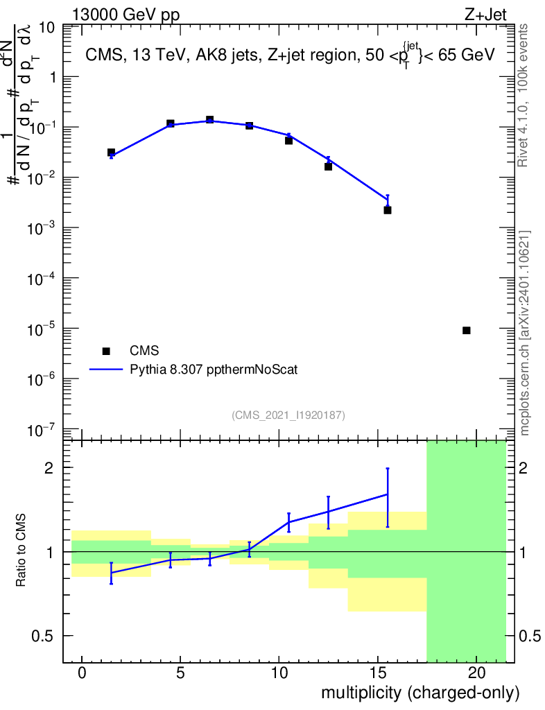 Lines: data, pythia8 8.307 ppthermNoScat |