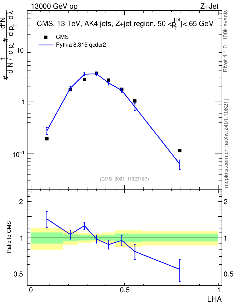 Lines: data, pythia8 8.315 qcdcr2 |