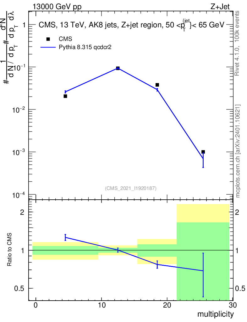 Lines: data, pythia8 8.315 qcdcr2 |