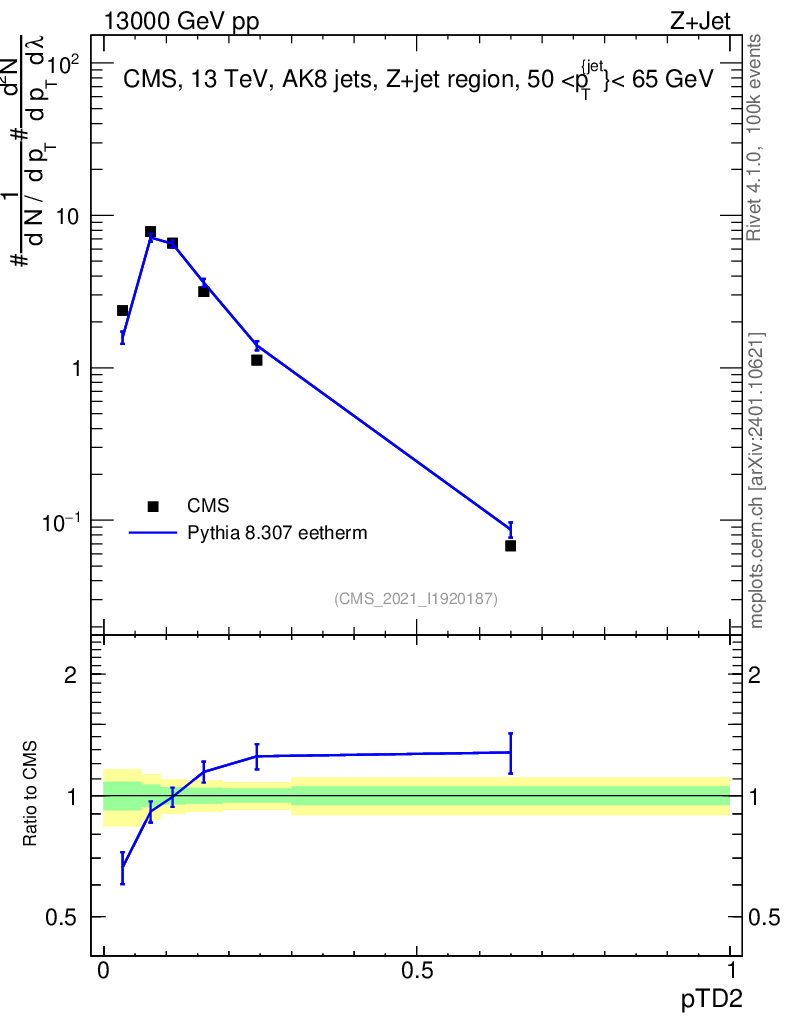 Lines: data, pythia8 8.307 eetherm |