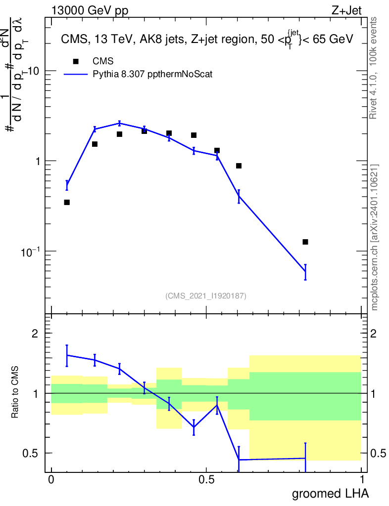 Lines: data, pythia8 8.307 ppthermNoScat |