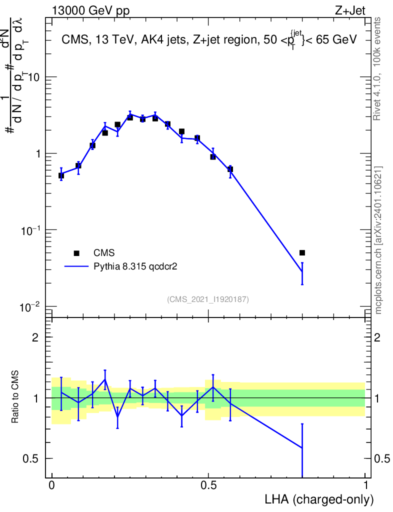 Lines: data, pythia8 8.315 qcdcr2 |