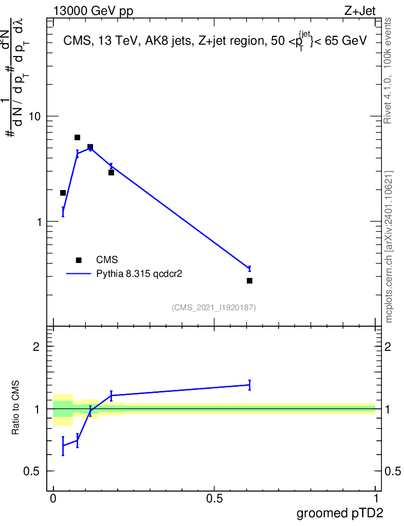 Lines: data, pythia8 8.315 qcdcr2 |