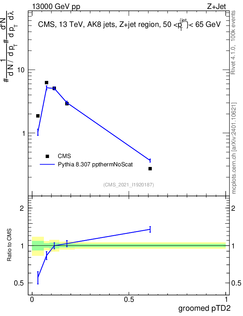 Lines: data, pythia8 8.307 ppthermNoScat |
