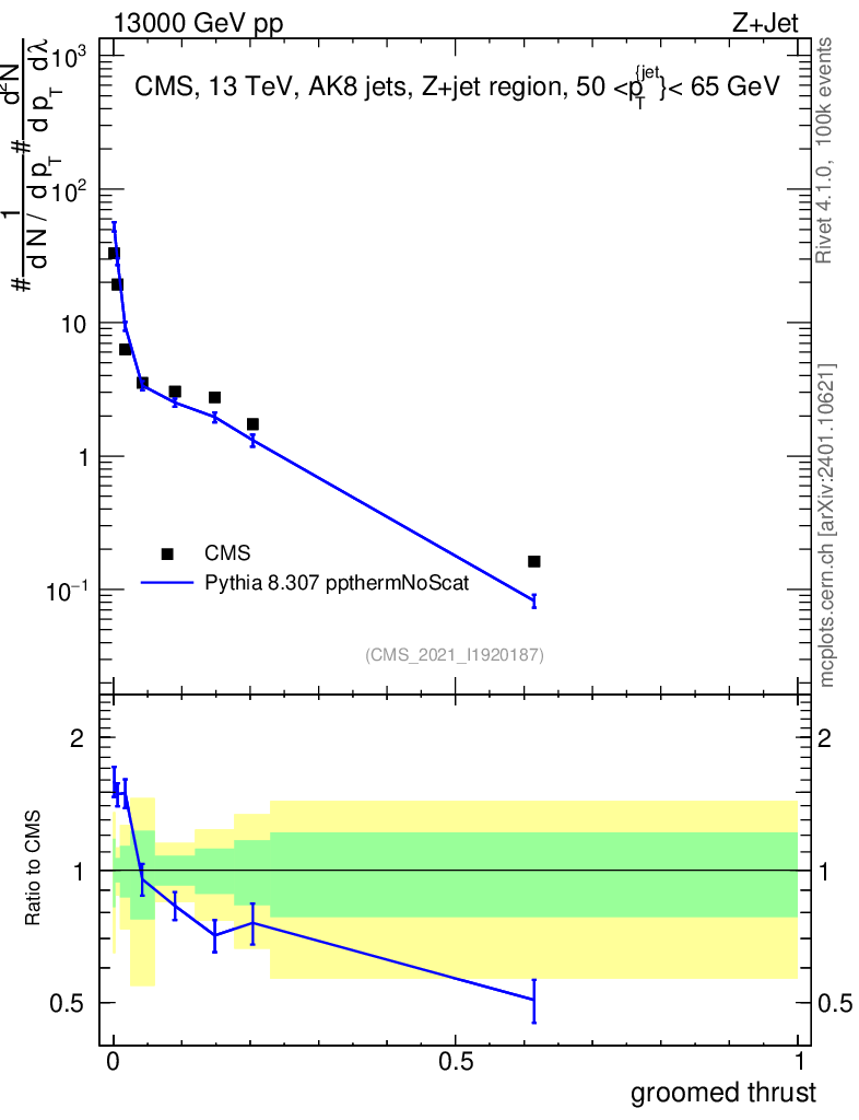 Lines: data, pythia8 8.307 ppthermNoScat |