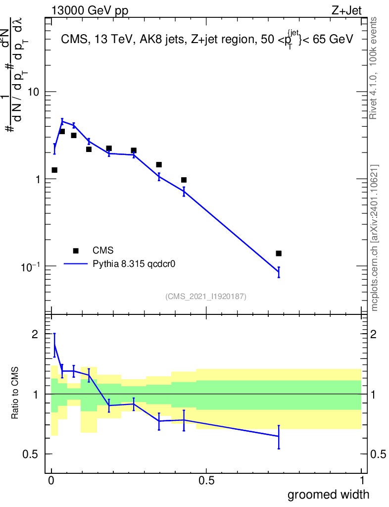 Lines: data, pythia8 8.315 qcdcr0 |