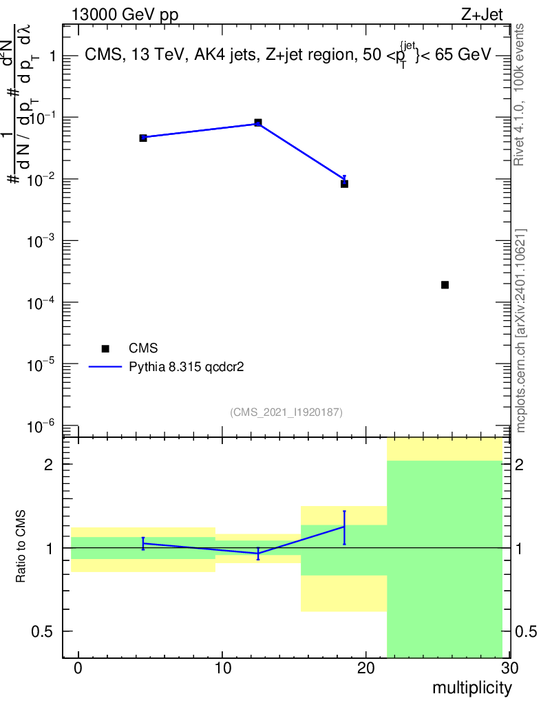 Lines: data, pythia8 8.315 qcdcr2 |