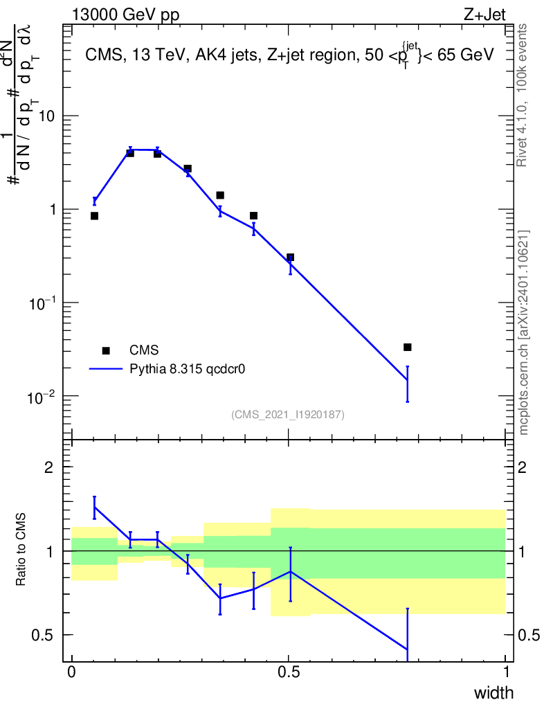 Lines: data, pythia8 8.315 qcdcr0 |