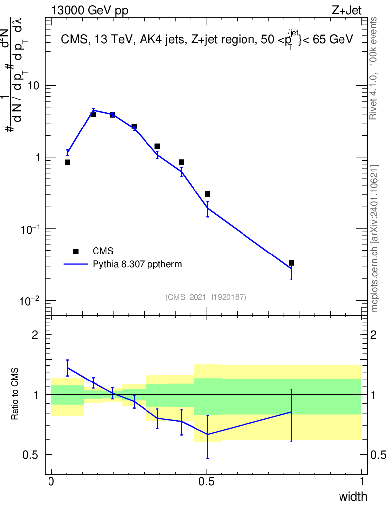 Lines: data, pythia8 8.307 pptherm |