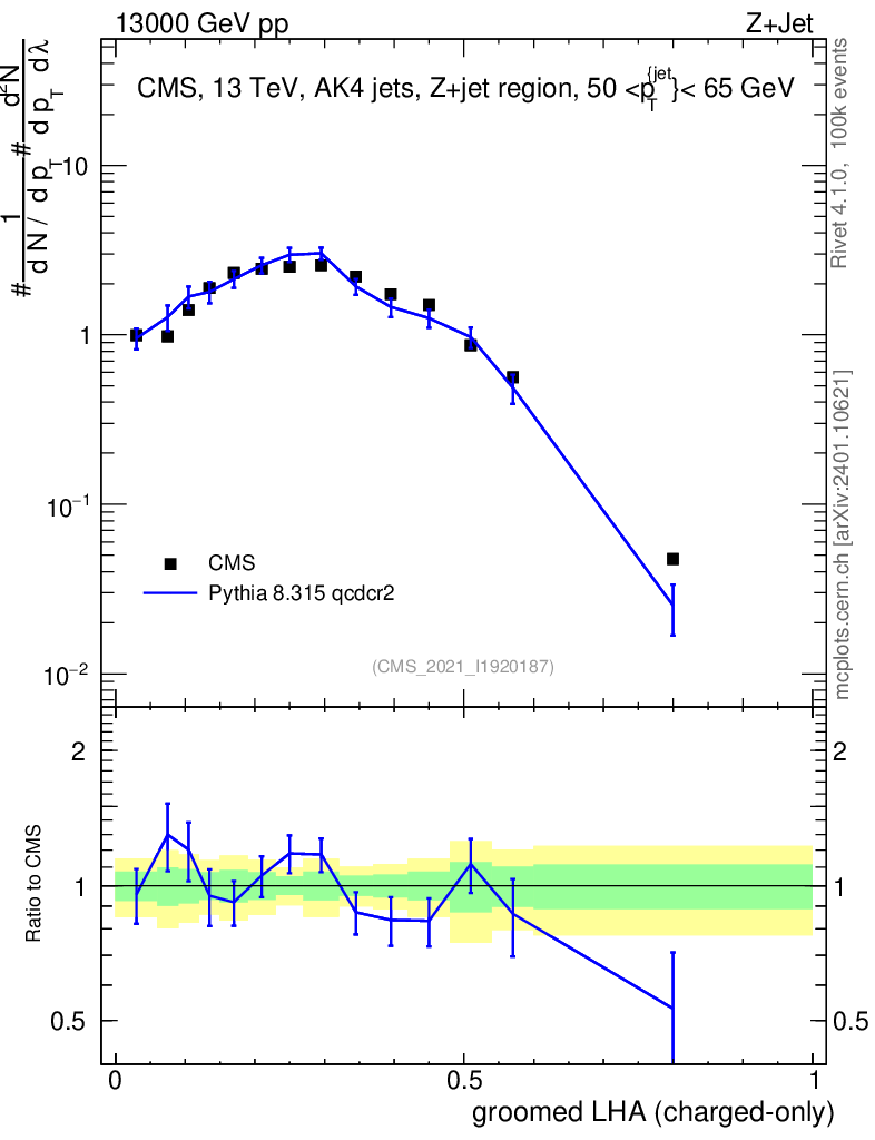 Lines: data, pythia8 8.315 qcdcr2 |