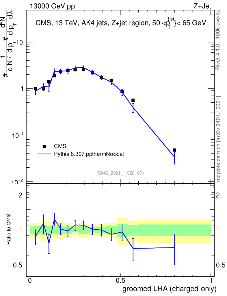 Lines: data, pythia8 8.307 ppthermNoScat |