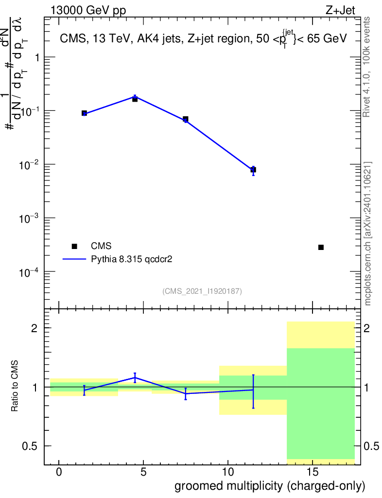 Lines: data, pythia8 8.315 qcdcr2 |
