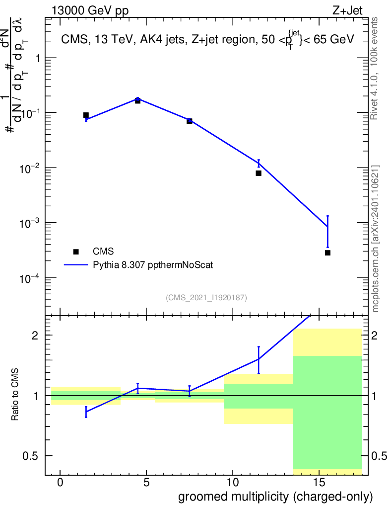 Lines: data, pythia8 8.307 ppthermNoScat |