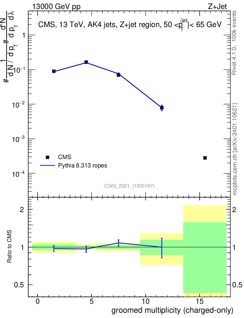 Lines: data, pythia8 8.313 ropes |