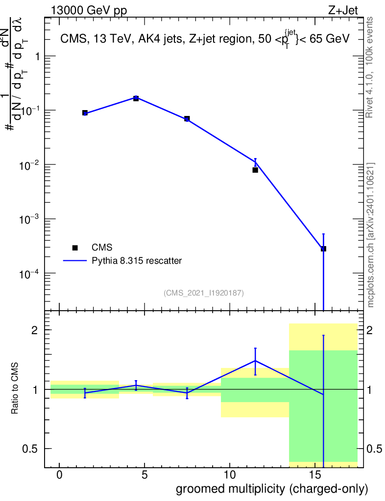 Lines: data, pythia8 8.315 rescatter |