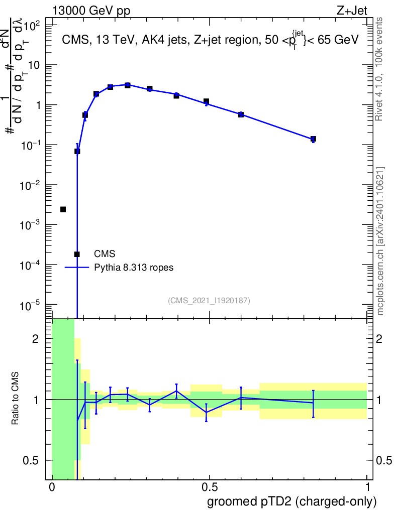 Lines: data, pythia8 8.313 ropes |