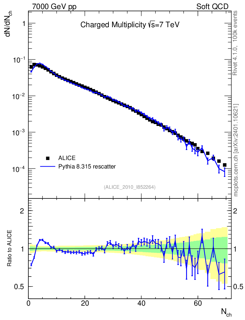 Lines: data, pythia8 8.315 rescatter |